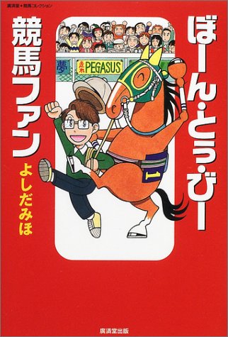 ぼーんとぅびー・・・!(笑) 私の心の師匠でもあるよしだみほ先生の新作です。 色んなタイプの競馬ファンについての本になっているんですが、 すごくよくわかるぞ、という部分が必ずどこかにあるはずです。 かくいう私も、ああ・・・そうなんだよ。と、納得したりわかりすぎて爆笑したりと大忙しでした。(笑) はっきり言ってオススメです。絵柄もポップで軽い感じなので気張らずに読める一品かと思いますよ。
